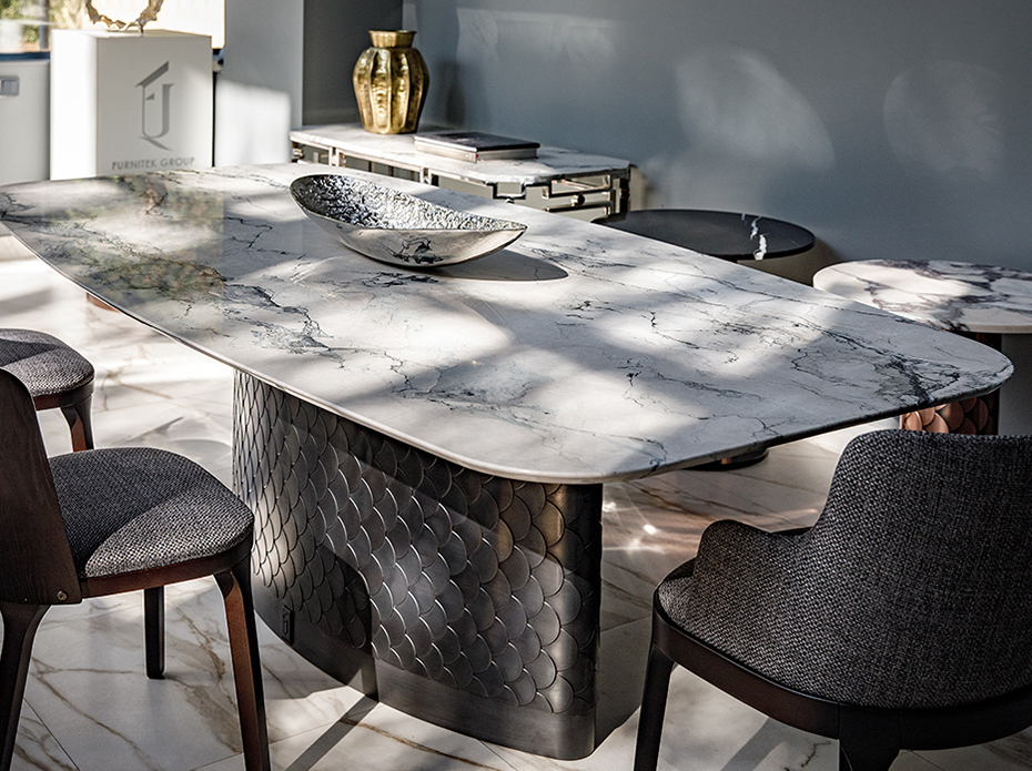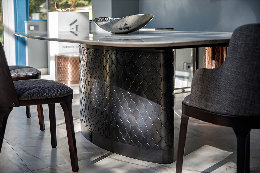 Стол обеденный лодка Ar-Deco FG-045 овальный чернёная латунь