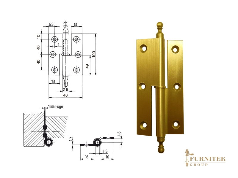 FS 8531027 Эксклюзивная мебельная петля карточная матовая латунь