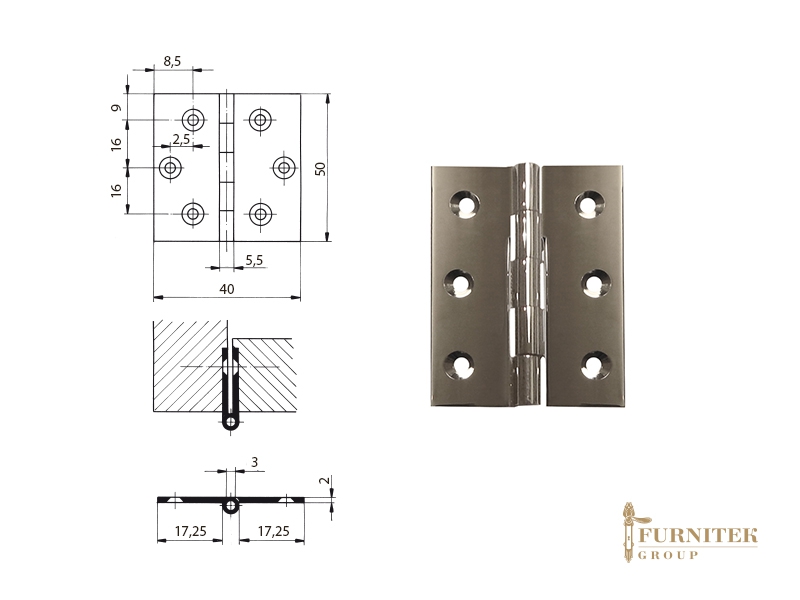 Эксклюзивная мебельная петля карточная FS 397 полированный хром