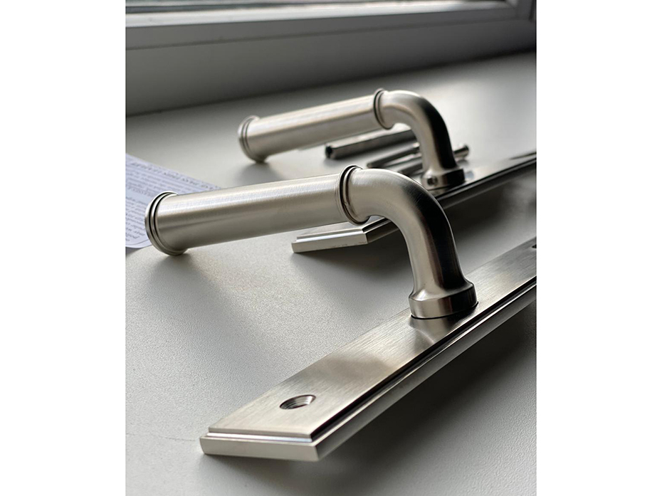 Ручка для балконной двери на узкой планке Frank Allart 7774597E01AA матовый никель